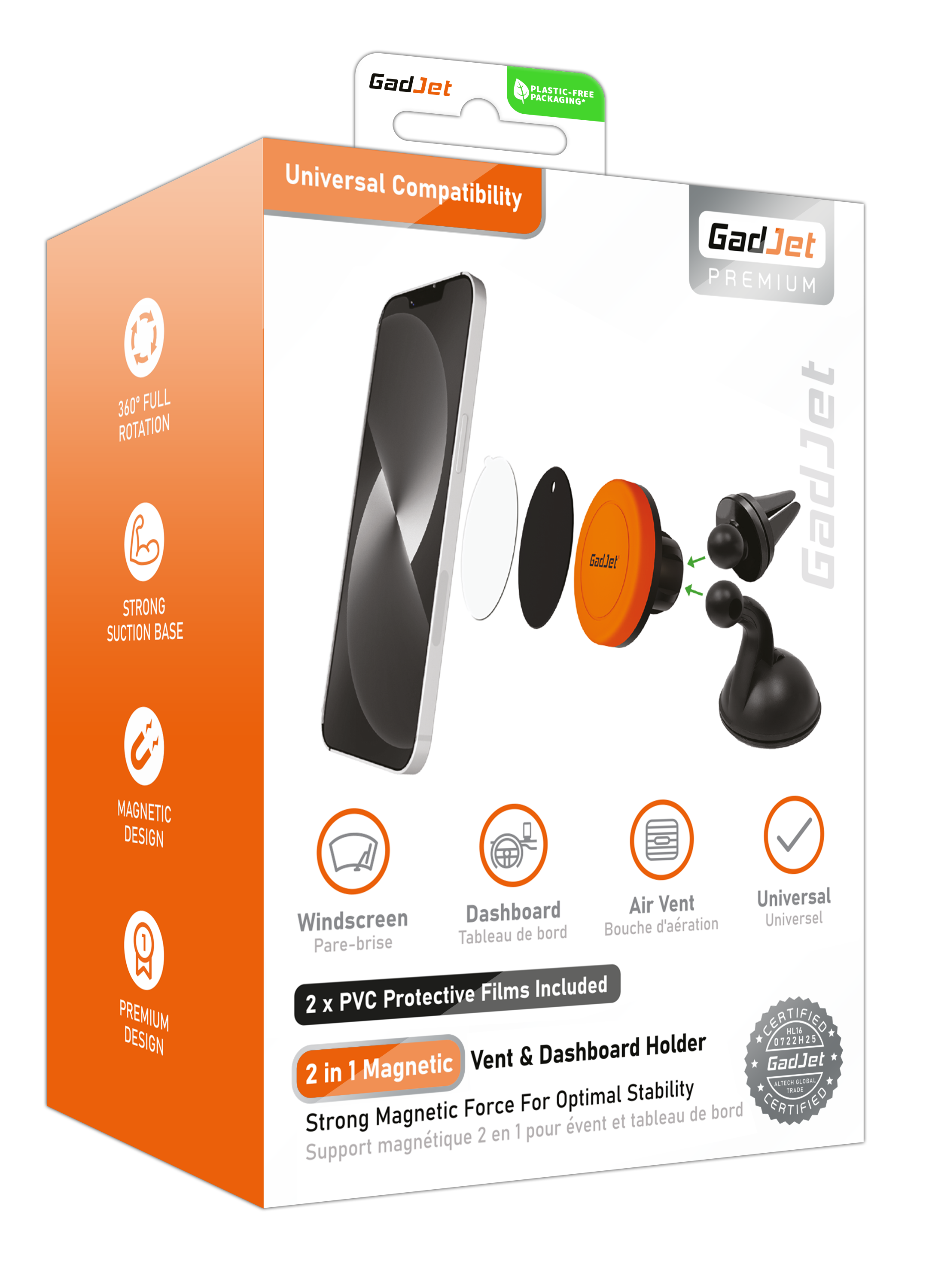 GadJet 2-in-1 Magnetic Vent + Dashboard Phone Holder HL16